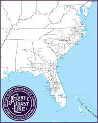 The Atlantic Coast Line served the Southeast, with a concentration of lines in Florida.